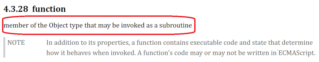 Let us see, what the ECMAScript language specification has to say regarding the JavaScript function. See the screenshot below or you can visit and see it here.