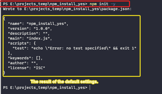 If you felt that it is a long process and don’t want to go typing one by one and setting up the details through the steps using npm init, you can then use npm init -y or npm init –yes to create and use the defaults instead.